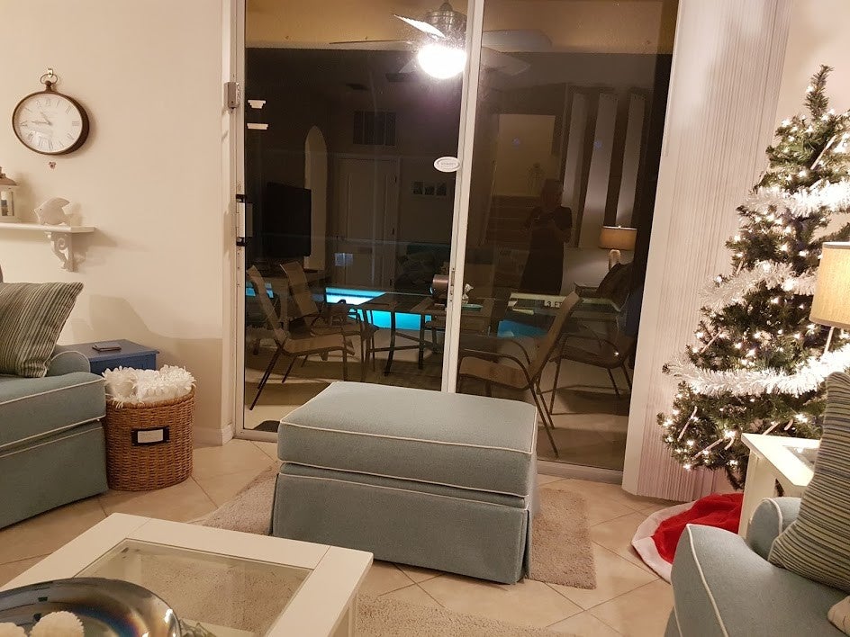 Ook de rest was weer een feest van herkenning: binnenkomen in 'ons' huis, het zwembad, de inrichting. Wel met een nieuwe bank én een kerstboom! Boodschappen uitladen en wegzetten en daarna nog even wat drinken op het terras. Niet lang, de vermoeidheid begon nu echt toe te slaan: tijd om de bovenverdieping op te zoeken. Toch nog even snel de koffers uitruimen, de badkamer op en dan, na 23 uur in touw te zijn geweest, het bed in.