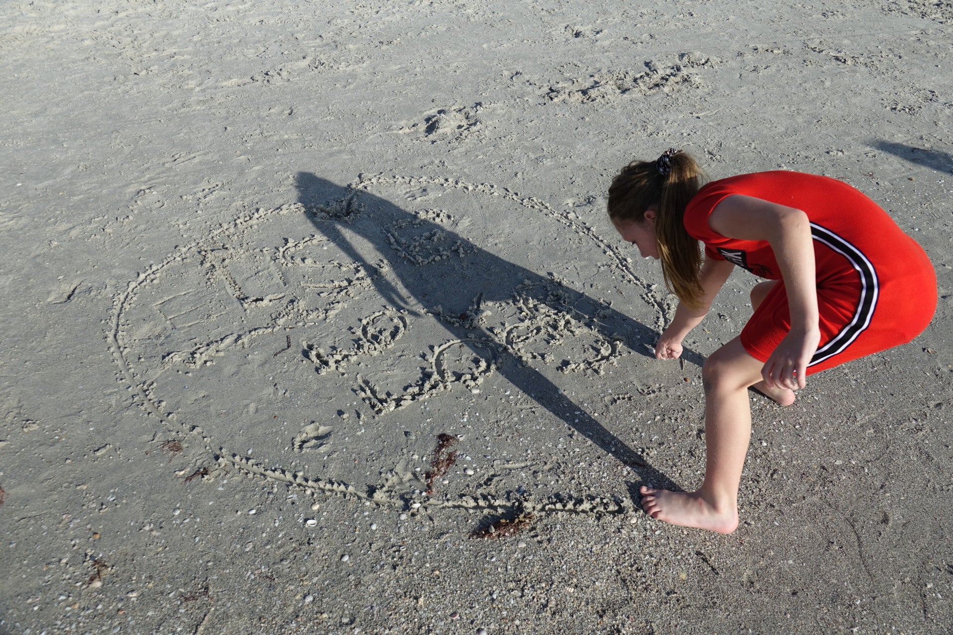 Daarna nog even naar de zee gelopen: Elise wilde uiteraard even met de voetjes in het water en een hart tekenen in het witte zand. Spec'iaal voor haar en haar BFF Loes.