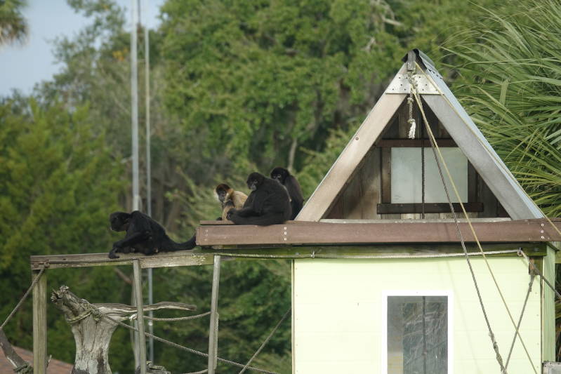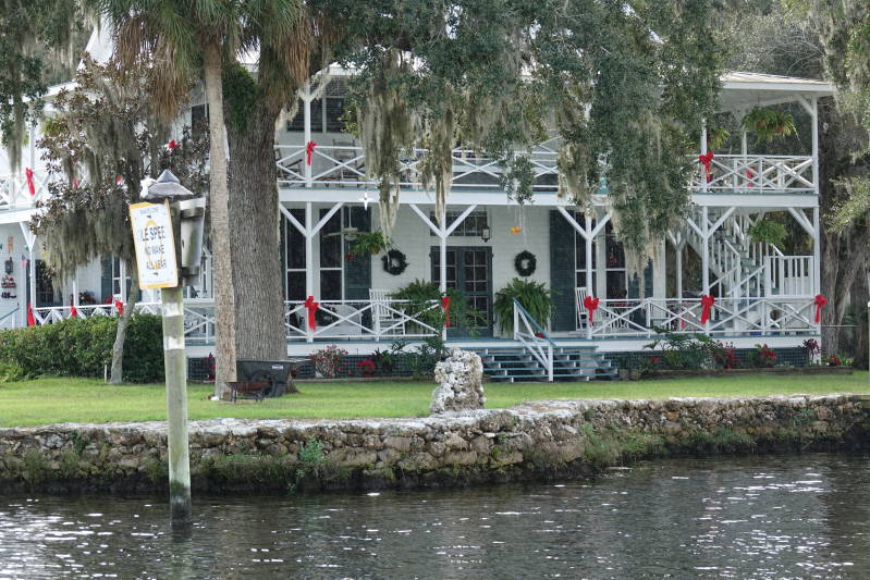 En..... kijken of we manatees (zeekoeien) konden spotten. In de winterperiodes zoeken manatees de warmere plekken op en Homosassa Springs is een van die plaatsen waar je deze vriendelijke lobbessen kunt traceren. Als je geluk hebt. En dat hadden we niet. Geen enkele gezien, helaas. Wel een keer een soort bubbel met een vage schaduw eronder maar het beestje bleef onder water.